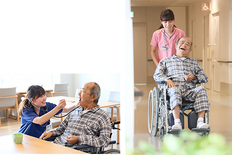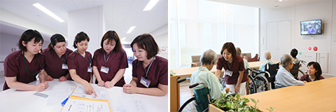 また、緩和ケアの患者様も受け入れており、専属の医師及び認定看護師を中心にケアをしてさせていただいております。日々のカンファレンスを大切にし、患者様・ご家族に満足していただけるよう頑張っております。