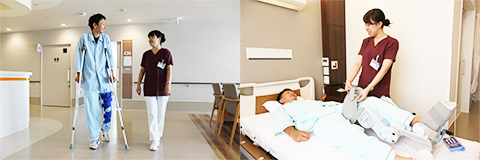 当院の整形外科病棟では、手術が必要な患者様には早期に予定をし、疼痛の改善や機能回復を目指しています。スタッフ一同が、患者様のADL向上に、全力で務めてまいります。